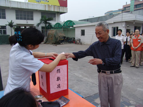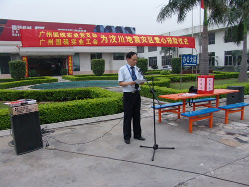 5月17日下午17时,广州市国砚实业发展有限公司、广州市国研机械设备制造有限公司在公司总部举行了为四川地震灾区献爱心的捐款活动。公司近100名干部员工积极踊跃地为灾区人民进行了募捐。