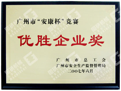 近日,广州市总工会、广州市安全生产监督管理局为在全国总工会和国家安全生产监督管理局组织开展的以“掌握安全生产知识,争做遵章守纪职工”为主题的“安康杯”竞赛活动中成绩显著的47家企业进行了表彰,广州市国研机械设备制造有限公司荣获“全国安康杯竞赛广州市优胜企业”荣誉称号。