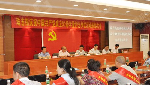 大会由珠吉街党工委副书记、办事处主任梁克强主持。街机关党支部、村改制公司党支部、社区党支部、非公经济组织党员代表共计130余人参加了大会。会上,包括我司陈树学、段慧在内的21名预备党员在街党工委副书记、纪工委书记王民的带领下参加了庄严的宣誓仪式。最后,街党工委书记杜党勇作了重要讲话,总结回顾了近年来珠吉街在基层党建、城市管理、社会事业、创文工作、群团文化等方面取得的成绩并提出相关要求。