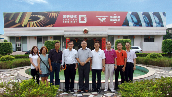 我公司董事长兼总经理王声位对洪会长和陈总经理一行的到访表示热烈欢迎,并从公司实力、产品质量及服务体系等各方面向客人做了介绍。最后,在公司党支部书记兼副总经理王声跃及市场部刘经理的陪同下,洪会长一行参观了我公司展厅。他们对国研机械的产品非常感兴趣,不时向刘经理咨询各种机器的运作原理、使用的原材料、产品销售方式等,刘经理一一做了详细解答。